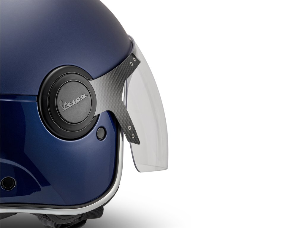 - Stylová matno-lesklá přilba Vespa s velkým plexi a výsuvnou sluneční clonou.